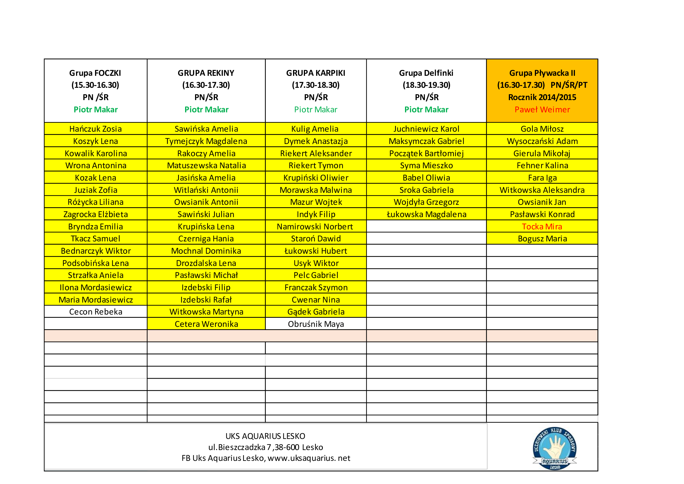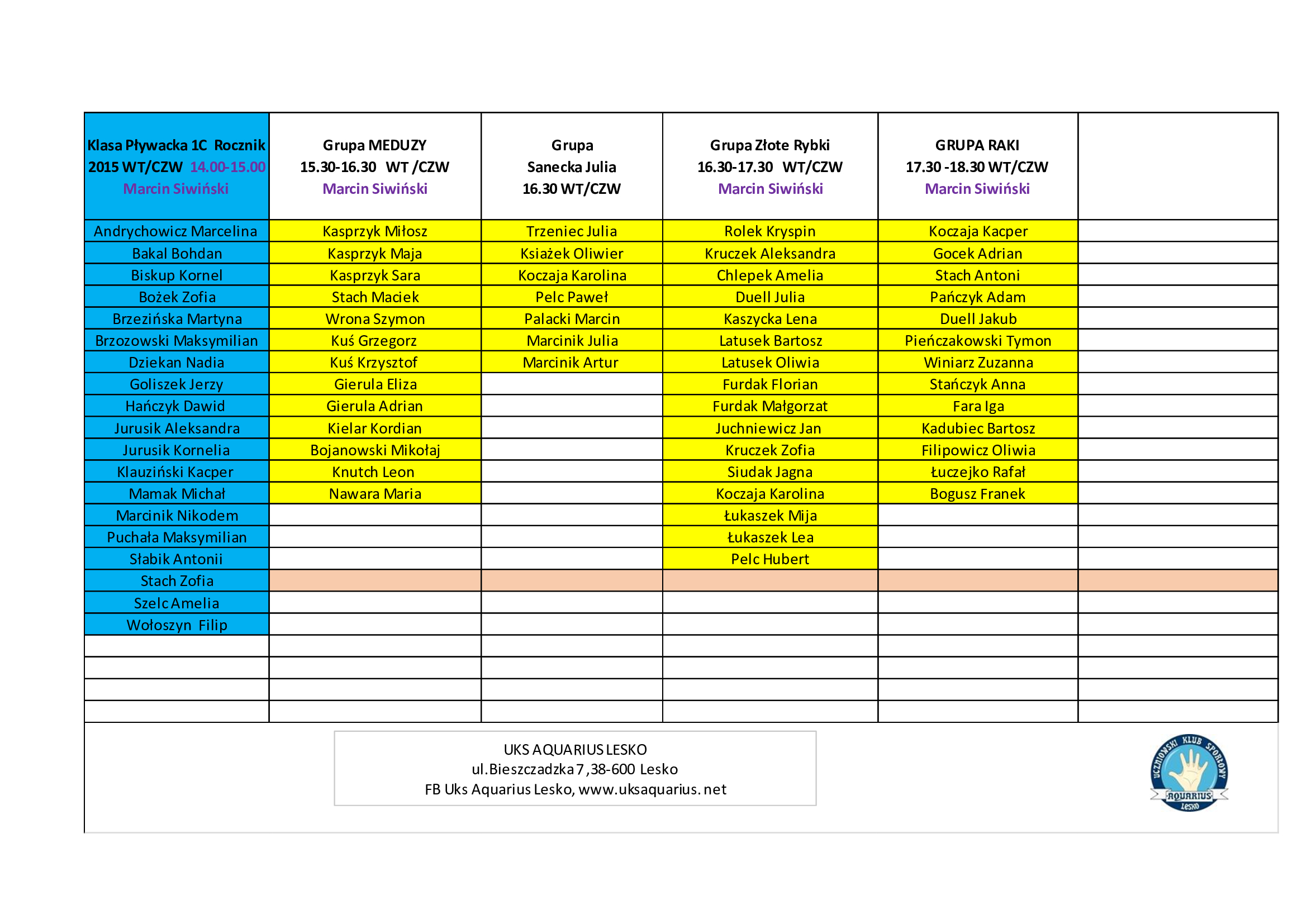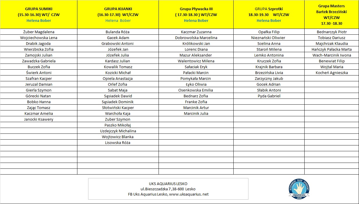 Przedstawiamy Listy członków Klubu UKS AQUARIUS na Sezon 2025/2026