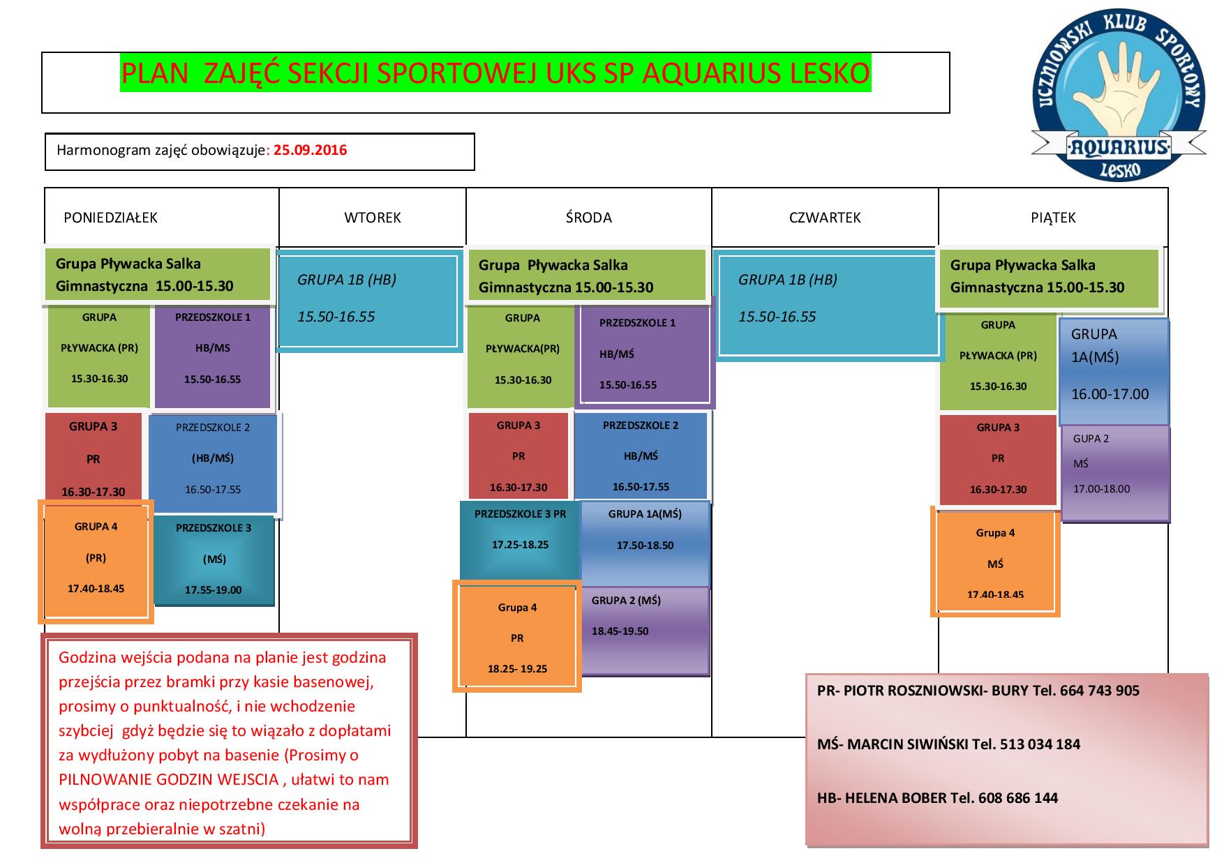 Prosimy o Wyrozumiałość i stosowanie sie do godzin i zapisów w grafiku , zaczynamy nowy sezon jest nas w klubie znacznie wiecęj prosimy o cierpliwość i stosowanie sie do poleceń obsługi basenowej .