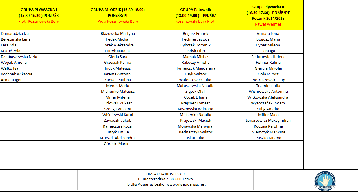 Przedstawiamy Listy członków Klubu UKS AQUARIUS na Sezon 2025/2026